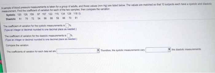 Solved A Sample Of Blood Pressure Measurements Is Taken F Chegg Com