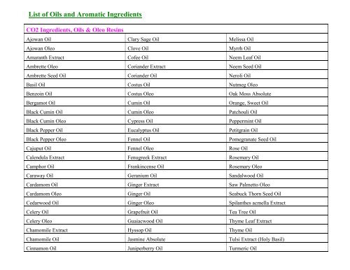 Herbs 5 List Of Oils And Aromatic Ingredients