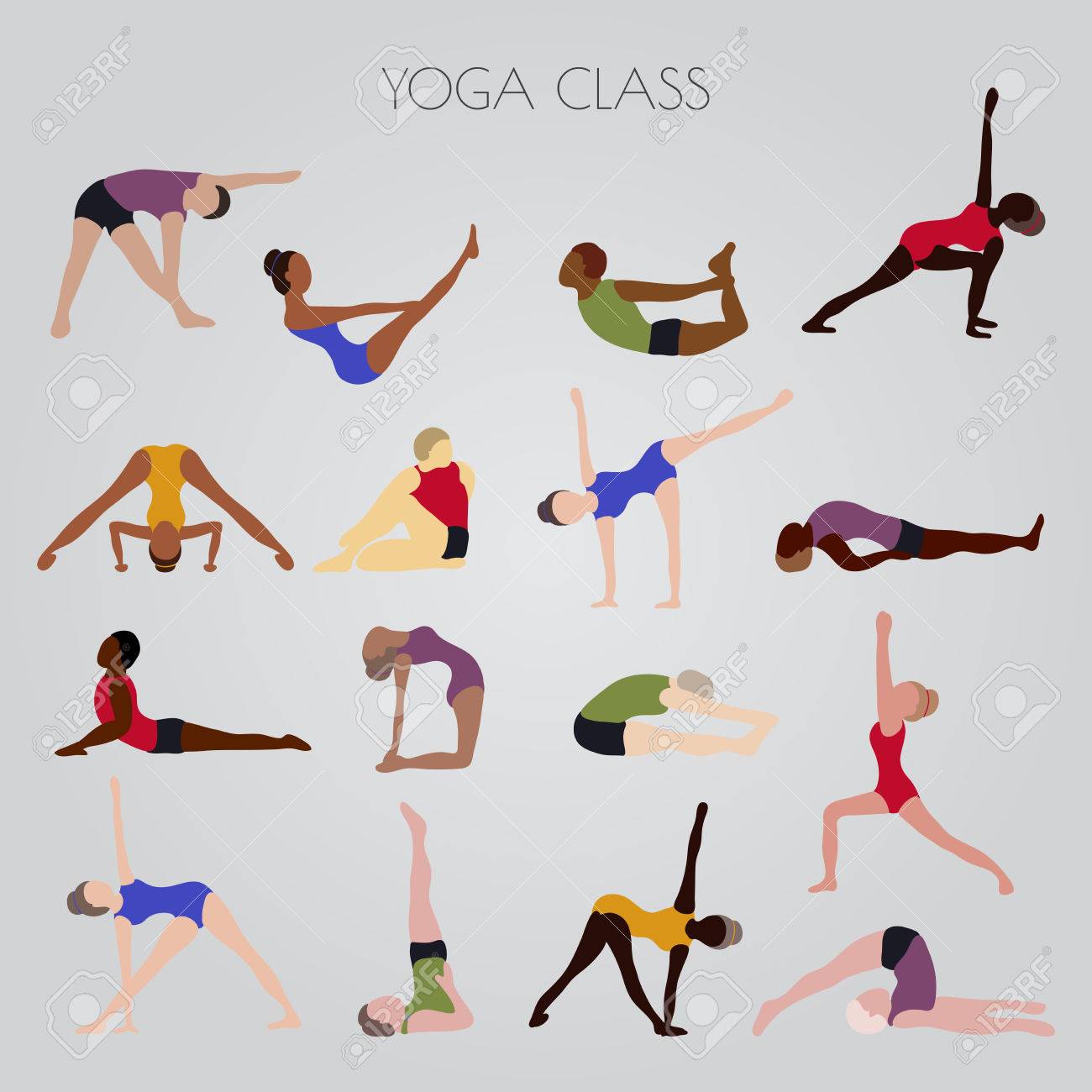 Men And Women Practicing Yoga Set Of Yoga Poses For Design Royalty Free Cliparts Vectors And Stock Illustration Image 43117700