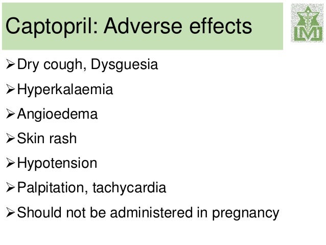 Potentiates blood glucose-lowering effects of insulin and oral antidiabetics eg. Captopril may also be used for purposes not listed in this medication guide. Common captopril side effects may include.