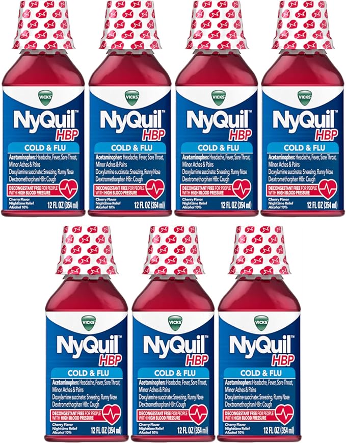 Nyquil Cough Cold Flu Nighttime Relief For High Blood Pressure 12 Ounces Each Value Pack Of 7 Health Personal Care Amazon Com
