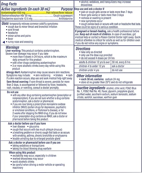 It treats symptoms of the common cold and flu such as sneezing sore throat headache minor aches and pains fever runny nose and cough so you can rest. The phase IV clinical study analyzes which people take Dayquil and have High blood pressure. It treats symptoms of the common cold and flu such as sneezing sore throat headache minor aches and pains fever runny nose and cough so you can sleep at night.