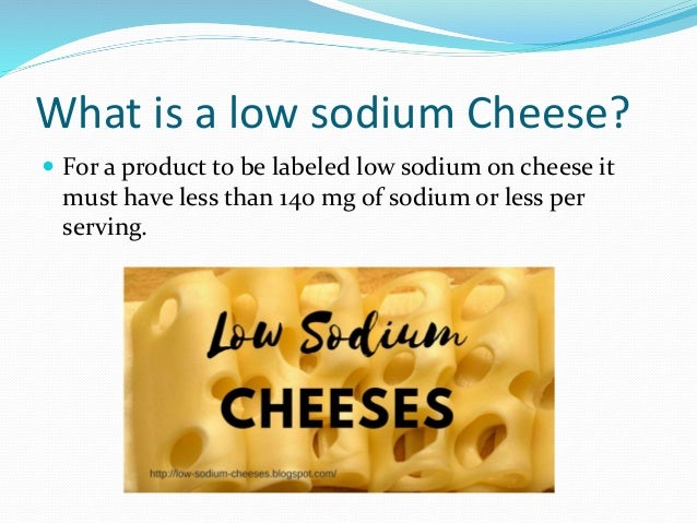Lowest sodium cheese. 5152015 Thankfully there are several brands that offer low-sodium cheese options. 11172017 Finally cheddar as an aged cheese is not typically a good melter on its own. Cheddar and Swiss cheese contain slightly higher amounts of fat.